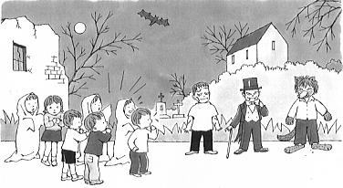 お化けの子どもたちは、訪れた遊園地で、人間の子どもたちをおどかそうとがんばります。