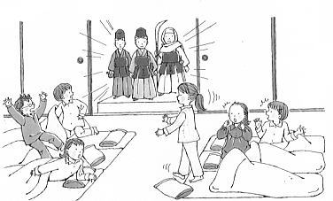 昔々、鎌倉に、源義経と静御前というとても仲の良い恋人どうしがいました。しかし、義経は兄頼朝に鎌倉を追放されて敵として命を狙われることになってしまいました。悲しい別れを告げられた静御前は「しずやしず・・・」の有名な歌を義経に贈ります。