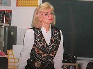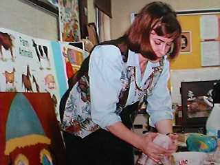 オーバン小学校の先生 とてもやさしそうな美人の先生だった。 アメリカでも小学校の先生は女性が多い。