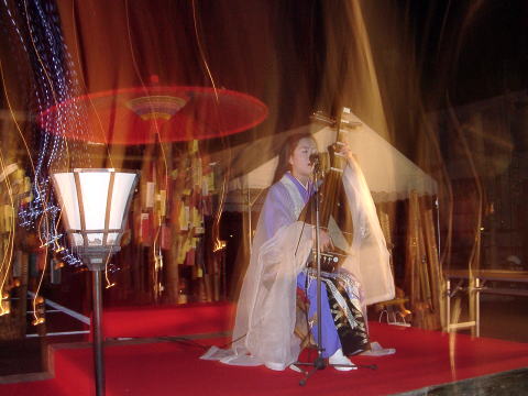 湯西川の夏のイベントの一つ平家琵琶のステージです。